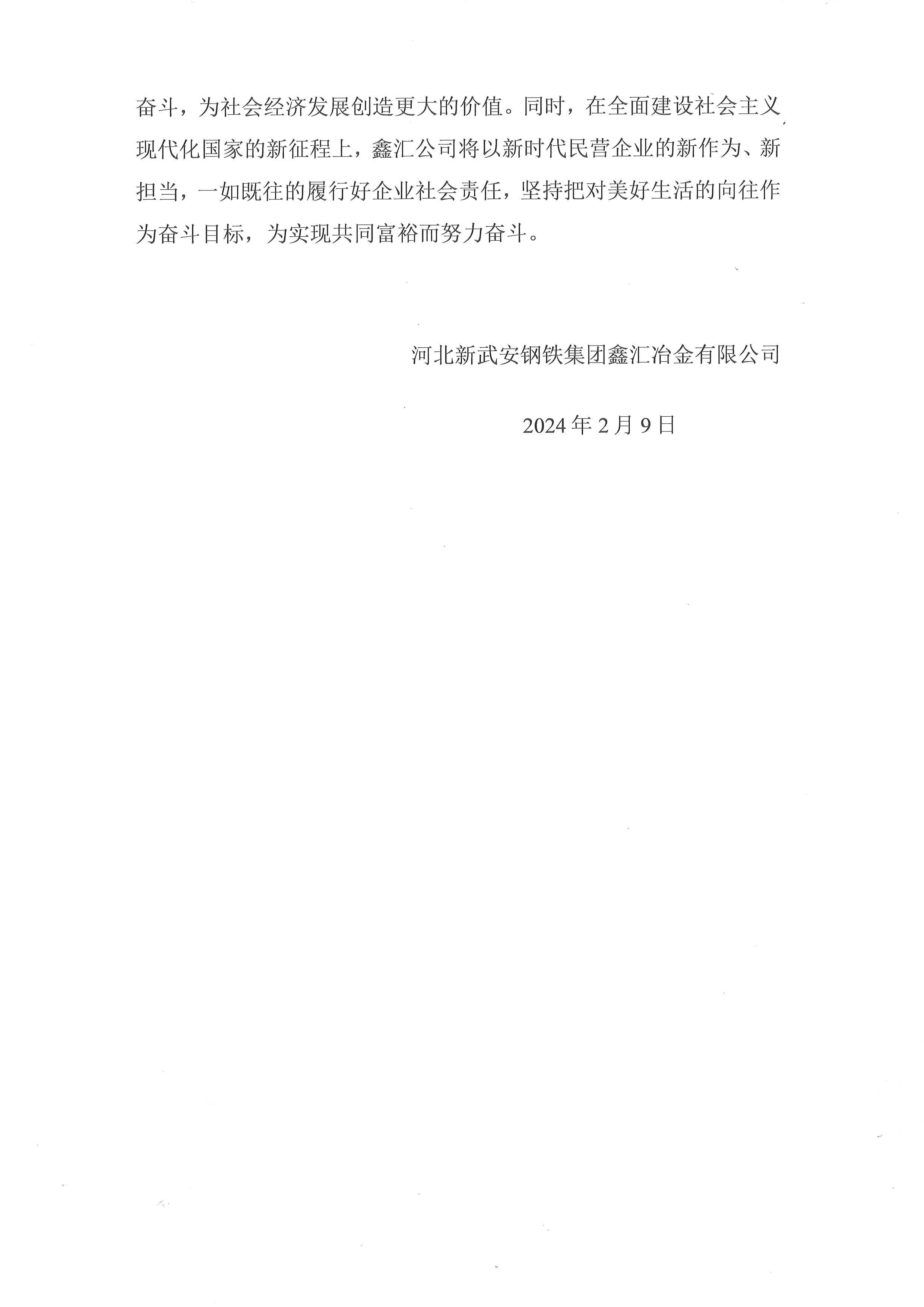 河北新武安鋼鐵集團鑫匯冶金有限公司2023年度社會責任報告