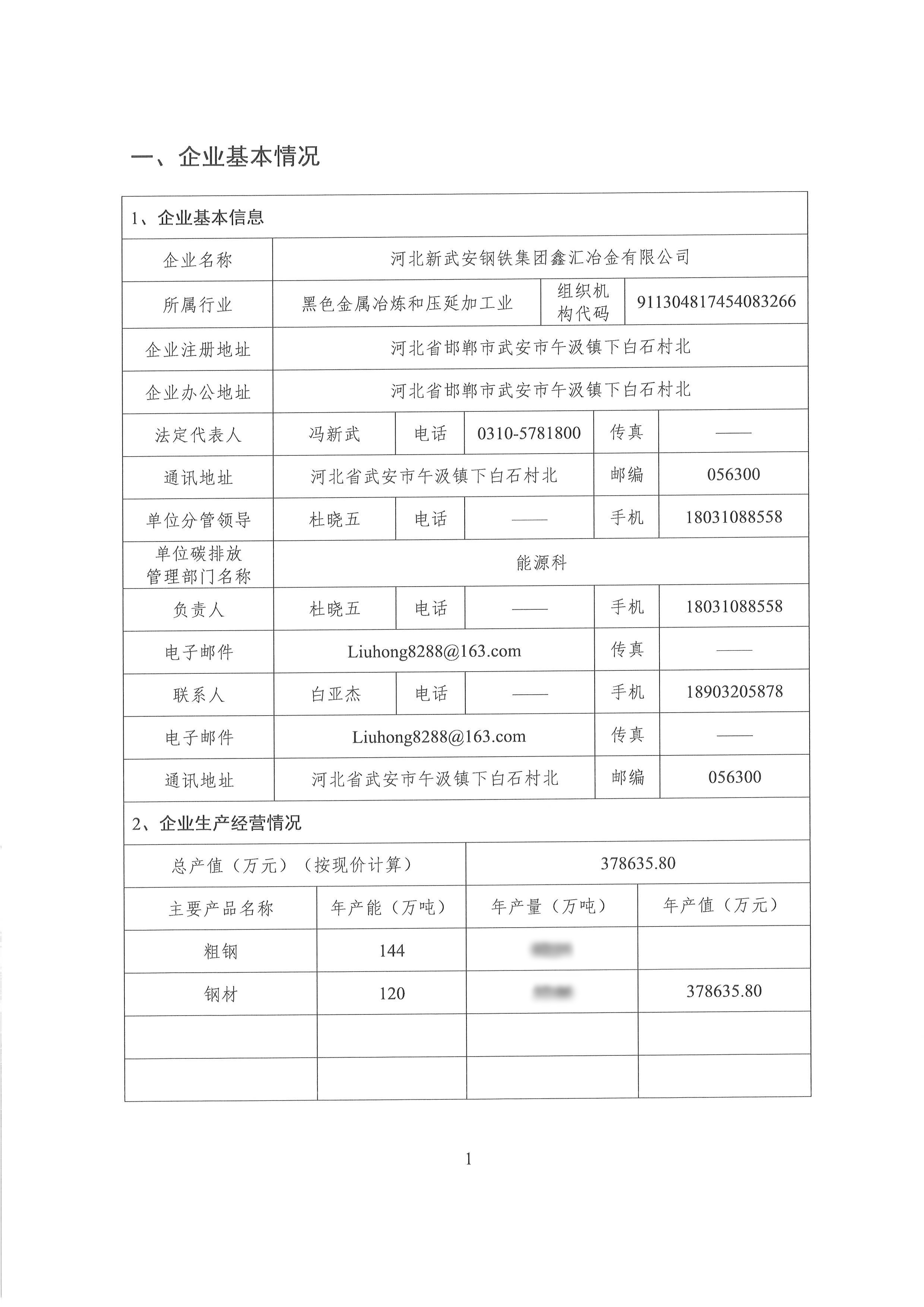 2023年河北新武安鋼鐵集團(tuán)鑫匯冶金有限公司碳排放報(bào)告